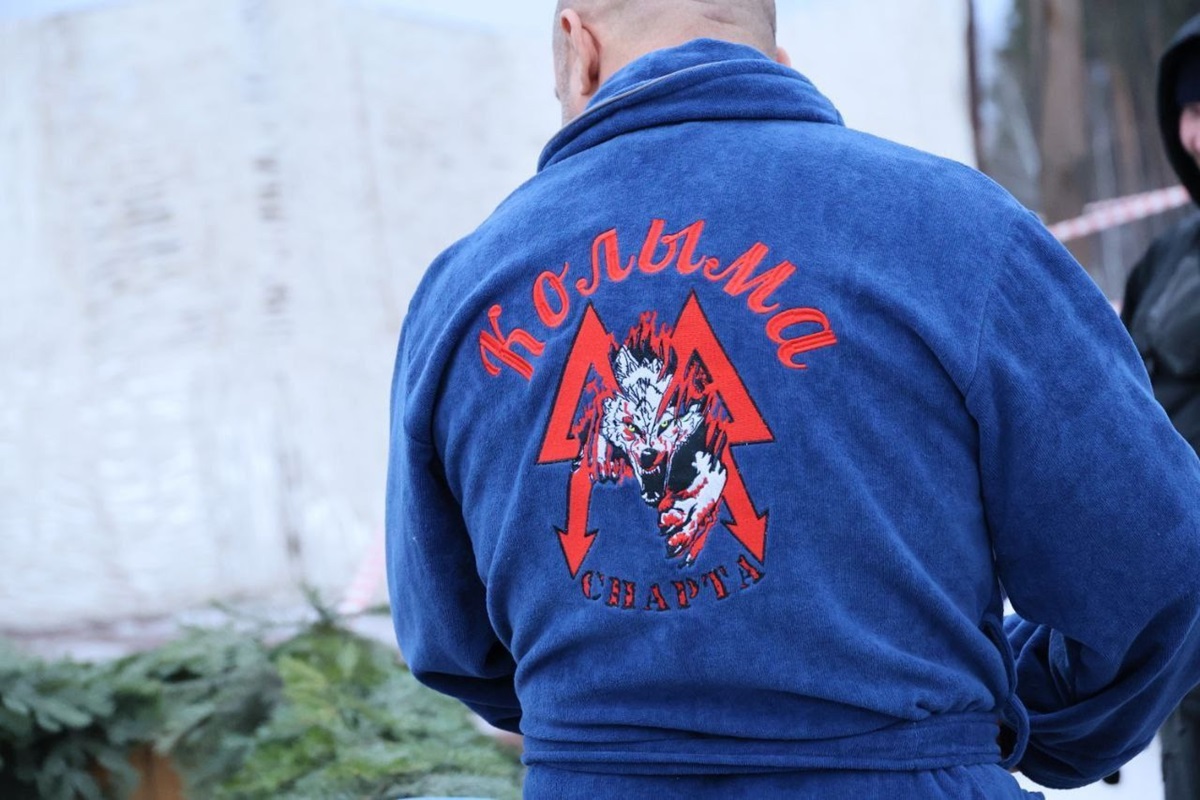 Фото: ТГ-канал полпредство УрФОНа видеозаписи видно, как Артём Жога трижды окунулся в прорубь с головой, осеняя себя крестом после каждого погружения. Выйдя из воды, он надел синий халат с надписью «Колыма спарта» и поздравил всех с церковным праздником.