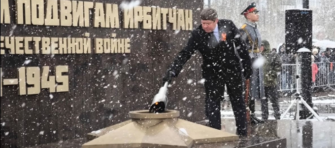 В Ирбите состоялась торжественная церемония зажжения Вечного огня на мемориале, посвященном боевым и трудовым подвигам ирбитчан в годы Великой Отечественной войны. Пламя от частицы Вечного огня, горящего на Мамаевом кургане, зажег глава Ирбита Николай Юдин.