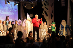 Сегодня сказку для маленьких лесничан с ограниченными возможностями здоровья рассказали и показали Домовёнок Кузя, баба Яга, Дед Мороз, Снегурочка и артисты Дома творчества и досуга «Юность».