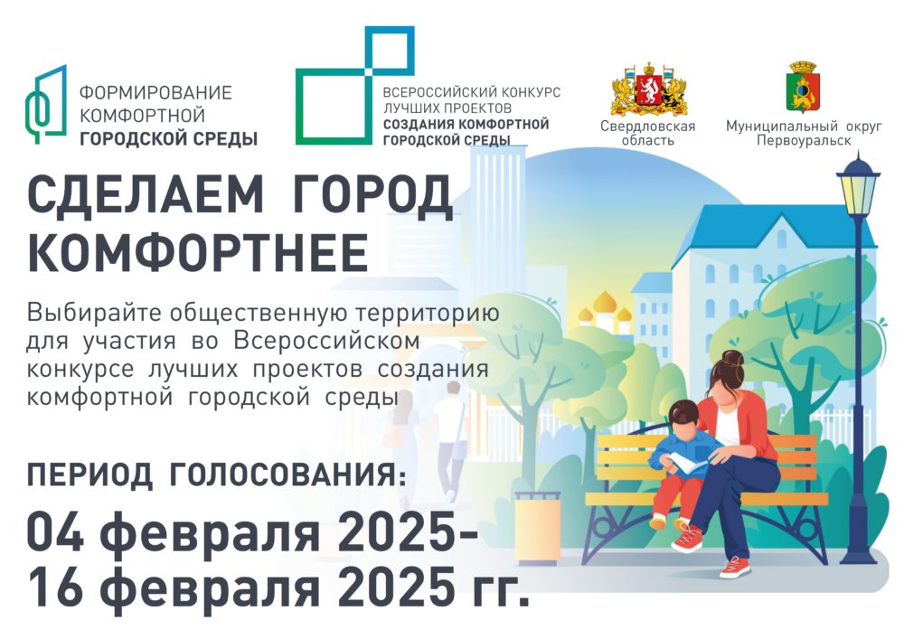 В 2025 году Первоуральск примет участие во Всероссийском конкурсе лучших проектов создания комфортной городской среды. И горожанам уже сейчас предлагают выбрать для этого общественную территорию. Главный приз конкурса – средства, выделенные из федерального бюджета на реализацию проекта благоустройства.