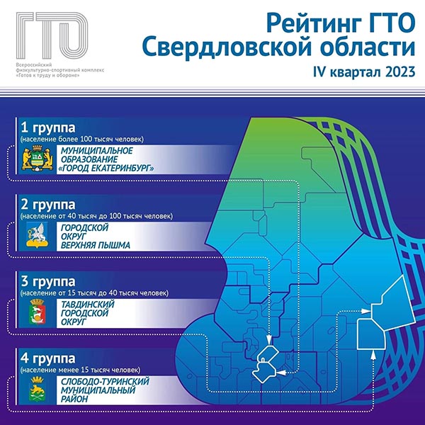 Рейтинг по реализации ВФСК ГТО в муниципальных образованиях Свердловской области за четвертый квартал 2023 года.