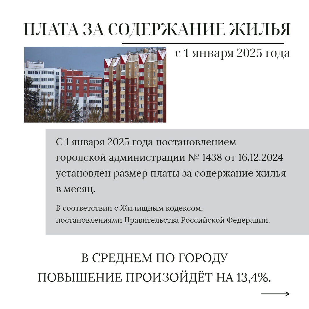 С 1 января 2025 года установлен размер платы за содержание жилья в месяц Для кого повышена плата и что повлияло ее рост - в карточках.