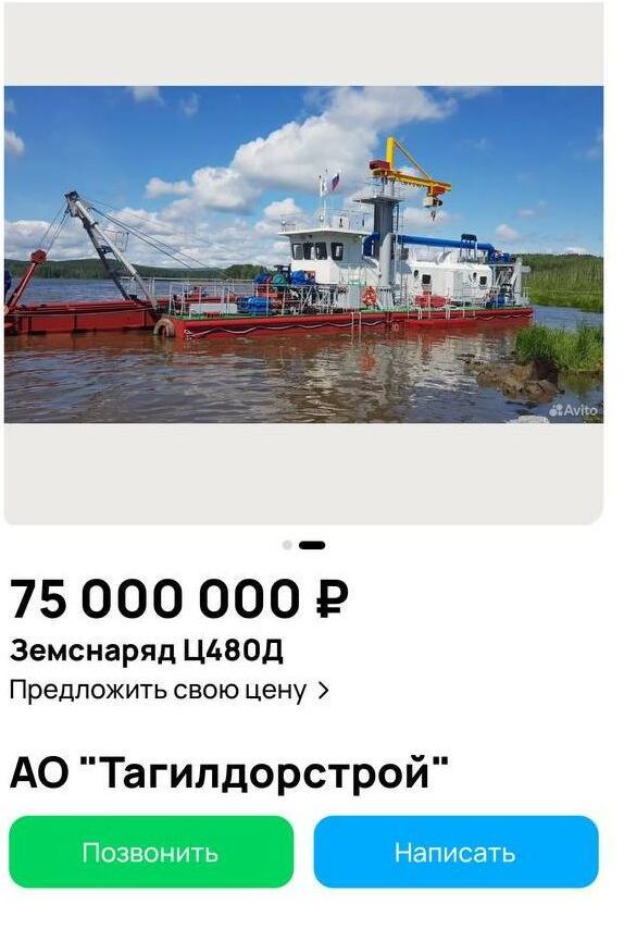 Компания «Тагилдорстрой» выставила на продажу земснаряд, которым в 2022-2023 годах откачивали ил со дна Черноисточинского пруда под Нижним Тагилом. В комплекте кроме самого судна для очистки от отложений идут 300-метровый плавающий пульпопровод и буксировочный катер. За всё предприятие просит 75 млн рублей.