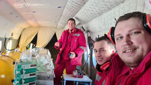 Детей нужно было было доставить в больницу одновременно и в кратчайшие сроки. В связи с этим, врачи анестезиологи-реаниматологи ОДКБ Евгений Вольхин и Владислав Рюмин, а также врач–ординатор Павел Исаев с двумя транспортными инкубаторами вылетели к месту назначения на самом большом в арсенале ТЦМК (Территориального центра медицины катастроф) вертолете МИ-8. Прибыв на место, специалисты оценили состояние малышей, поместили в транспортные инкубаторы, подключили к ИВЛ и на протяжении всего полета, который длился около часа, контролировали частоту сердечных сокращений, уровень артериального давления, температуру и процент насыщения крови малышей кислородом.